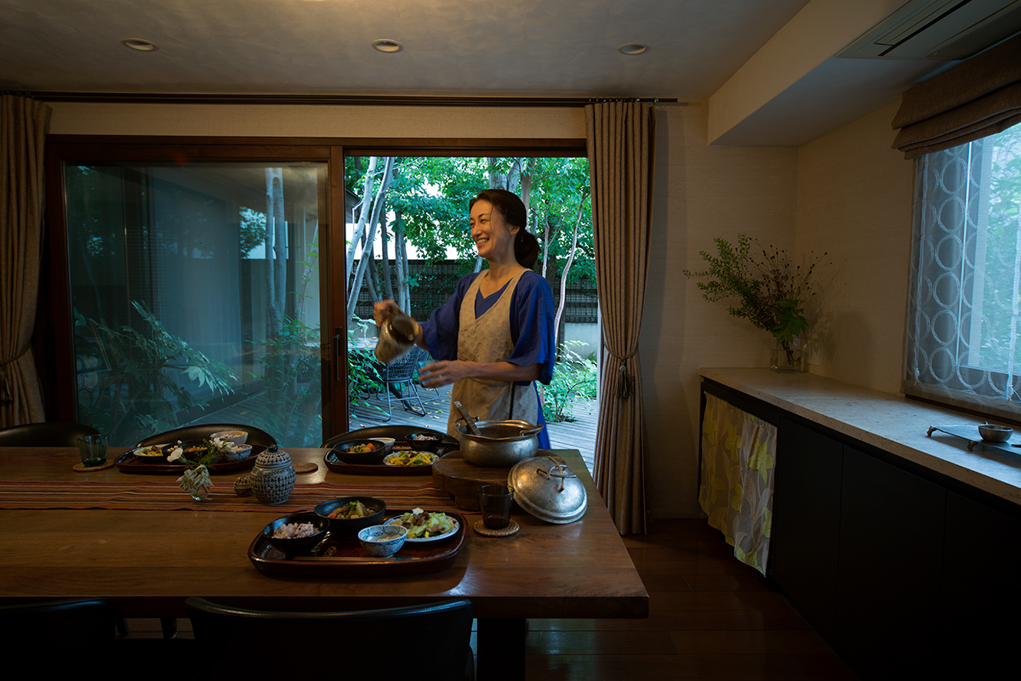 手作りご飯が並ぶ食卓は橙色の暖かい光が灯ります